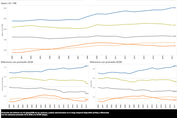 Pero, ¡ay!, España es un país tradicionalmente poco interesado por la ciencia y la investigación, con contadas excepciones en períodos históricos puntuales. Esa desconexión también está patente en la industria española. Las cifras de inversión empresarial en I+D, muy reducidas en comparación con los países de nuestro entorno, son un claro indicador de la limitada relevancia del sector empresarial en el sistema de ciencia y tecnología español.